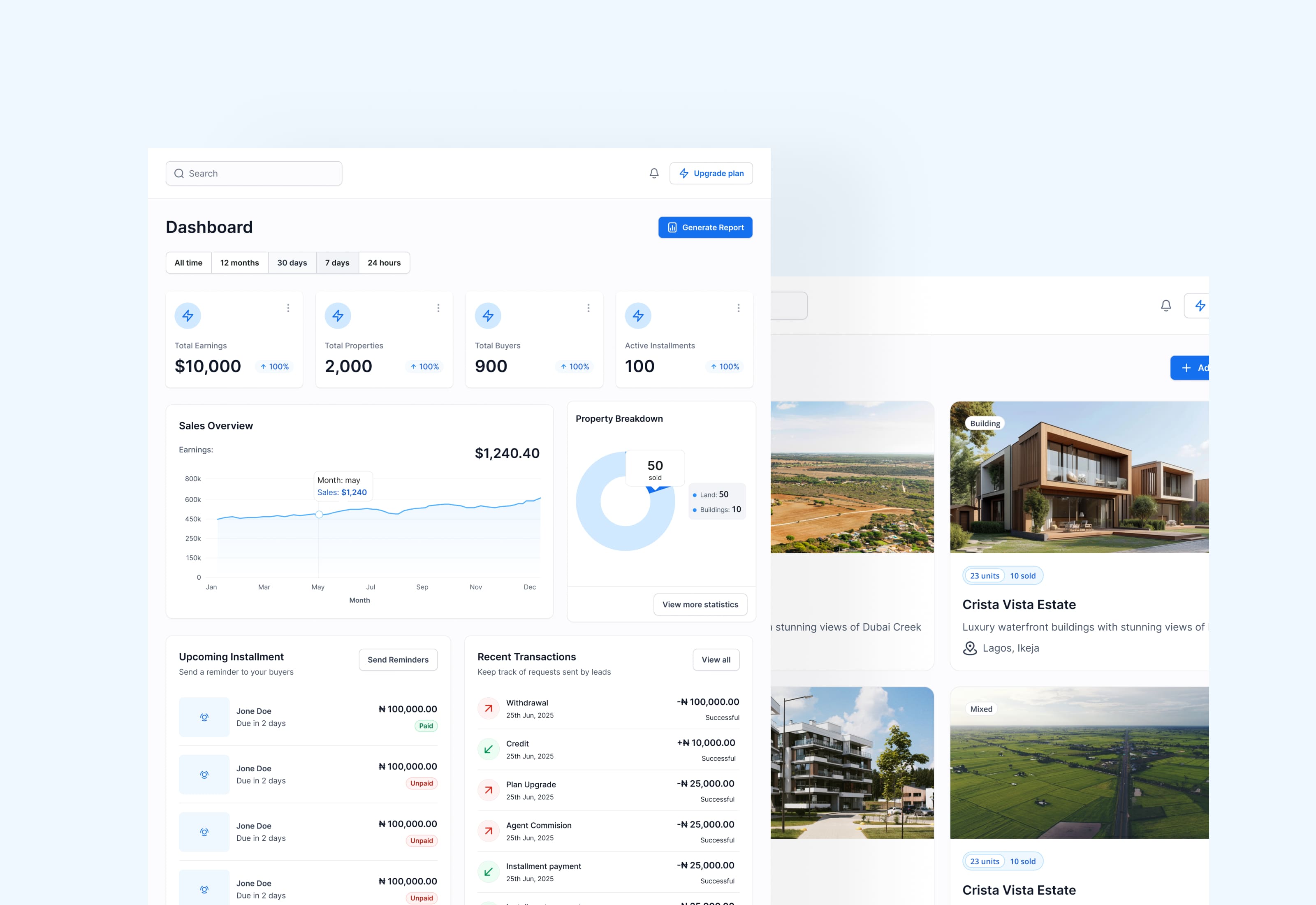 involved in selling and managing estate properties—from capturing leads, handling agent referrals, and managing legal documentation to tracking payment installments.
